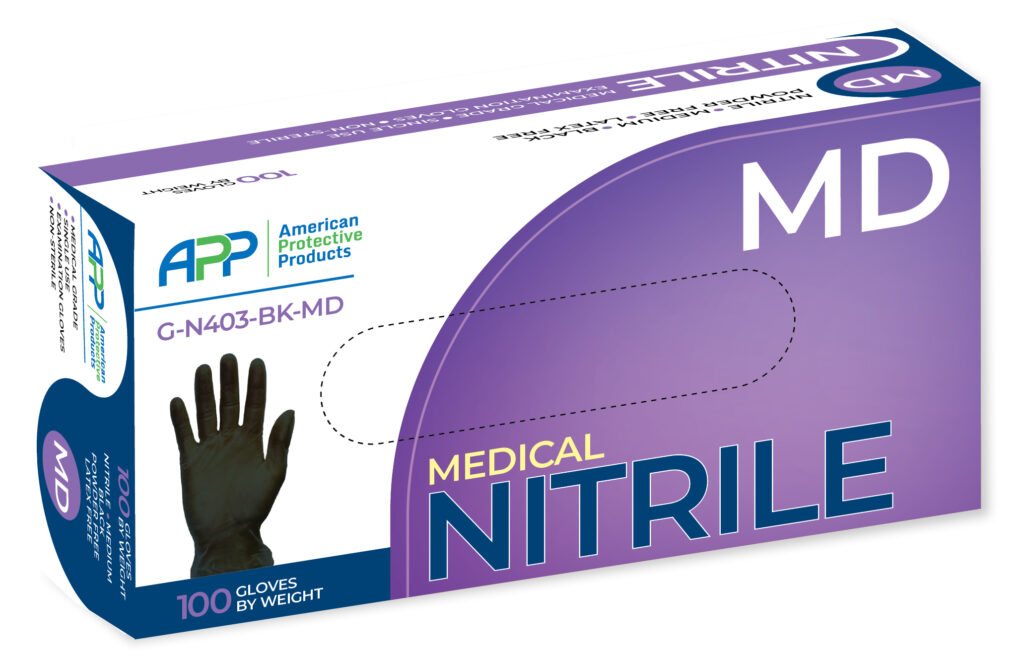 American Protective Products Powder Free Black Nitrile 4.0 MIL Exam Glove